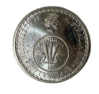 Issued to mark 50 years since Australia adopted decimal currency, this special edition 10 cent coin by the Royal Australian Mint features Queen Elizabeth II’s effigy alongside a tribute to the pre-decimal Threepence “stalks of grain” design. A modern celebration of Australia’s rich coinage history.
