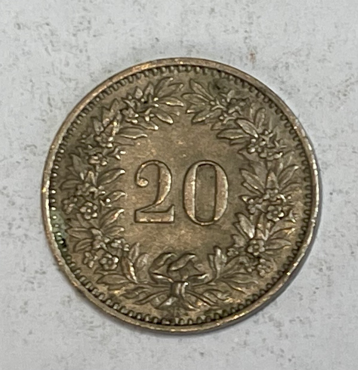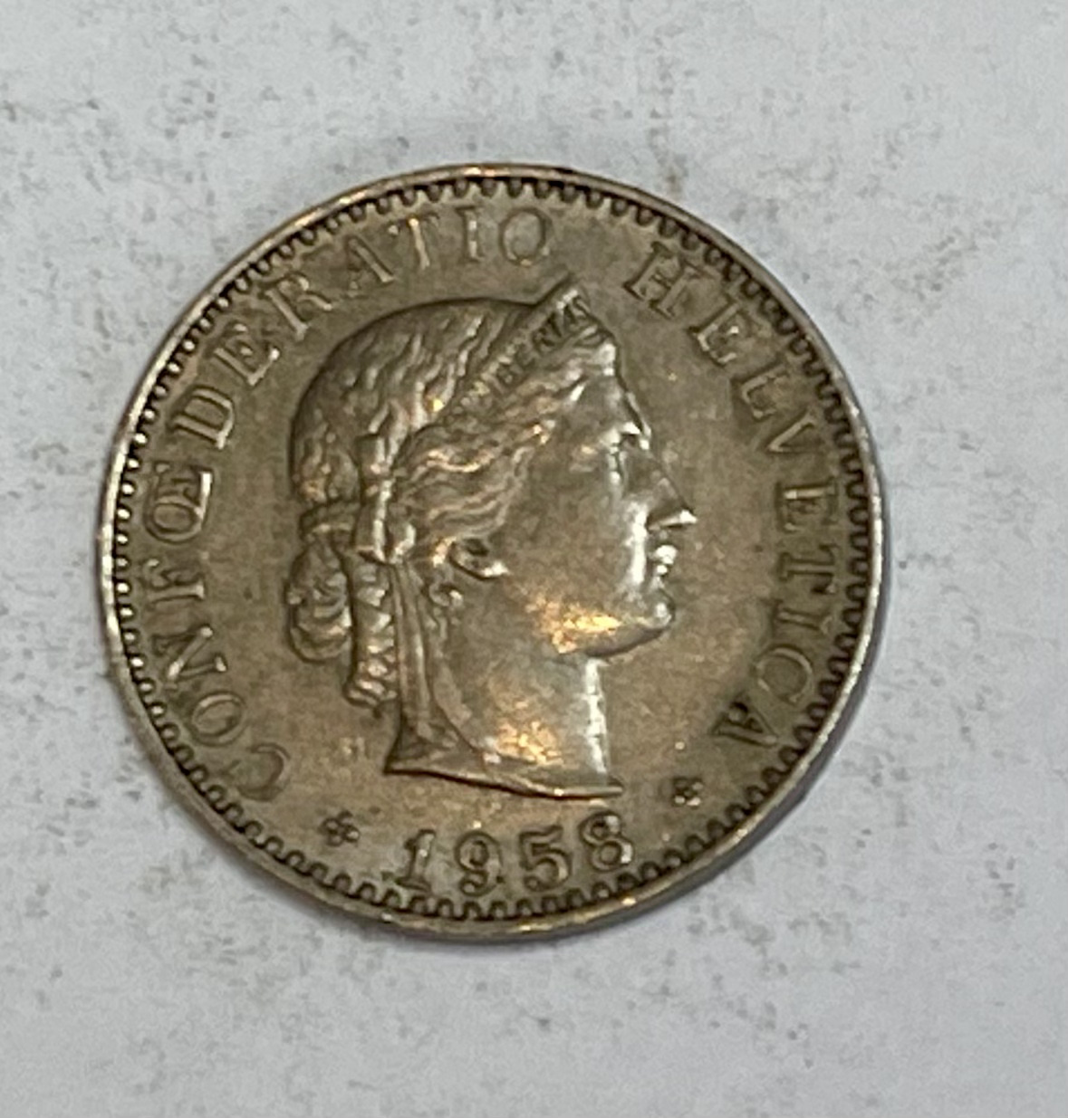1958 Swiss 20 Rappen.