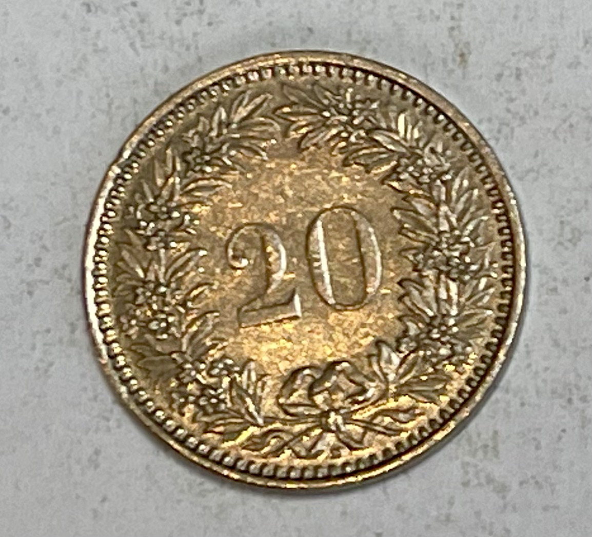 1986 Swiss 20 Rappen.