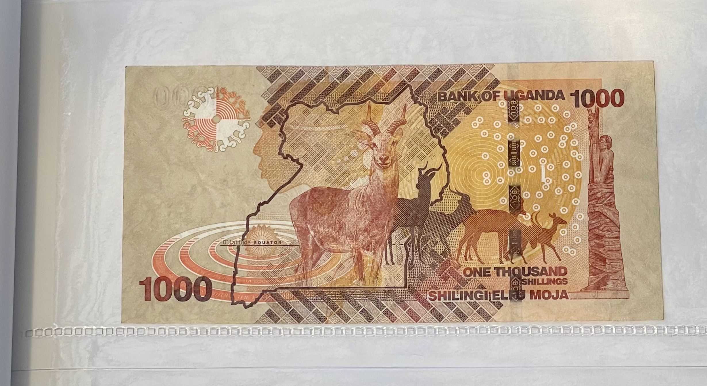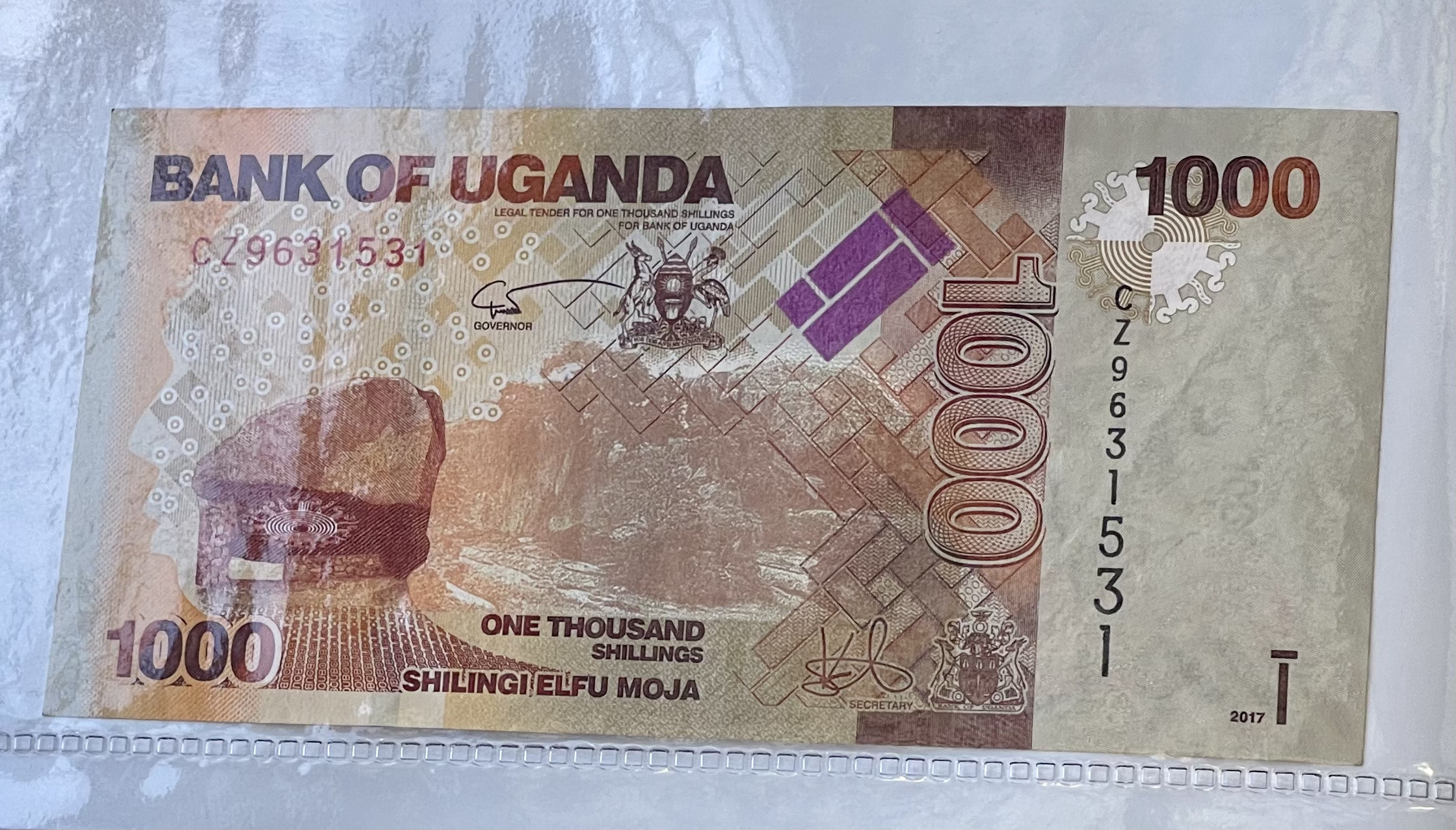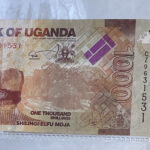 2010 Uganda 1000 Shilingi Elfu Moja Banknote. Serial Number: CZ9631531