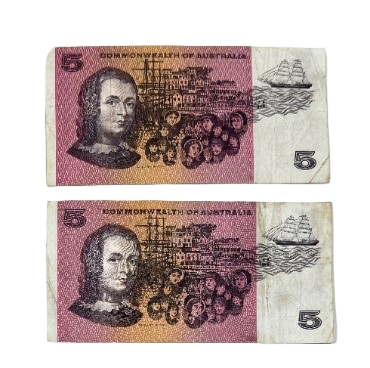 The $5 paper banknote was first issued in 1967 and features Sir Joseph Banks and Caroline Chisholm. Banks was a naturalist and sailed with Captain James Cook to Botany Bay in 1770.