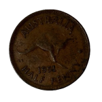 The Australian halfpenny coin was the smallest circulating denomination of the Australian Pound. It has the same dimensions and composition as the British pre-decimal halfpenny, from which it is derived (for a time, the coins circulated in parallel and were interchangeable in Australia – but not in the United Kingdom; the currencies were fixed at par). 1/2 penny was worth 1/24 of a shilling, or 1/480 of a pound.